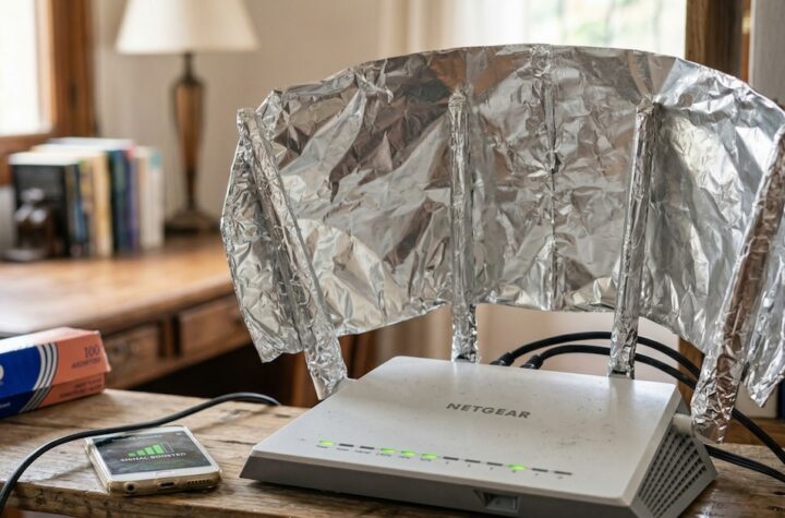 Un router WiFi con un reflector de papel aluminio casero muestra una señal mejorada...